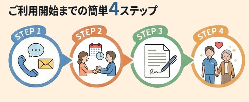 初めての方でもスムーズにご利用いただける、かんたんな4ステップの流れをご紹介します。